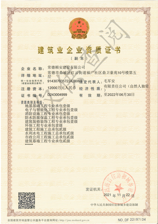 您現(xiàn)在位置: 榮譽資質(zhì) - 壹貳級資質(zhì)