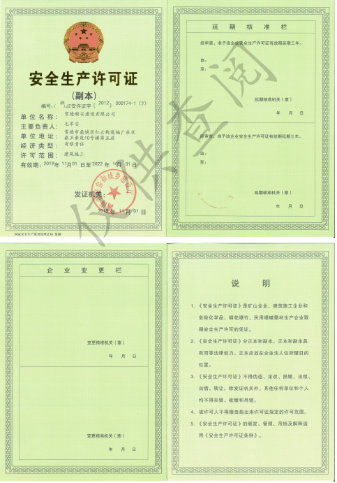您現(xiàn)在位置: 榮譽資質(zhì) - 安全生產(chǎn)許可證