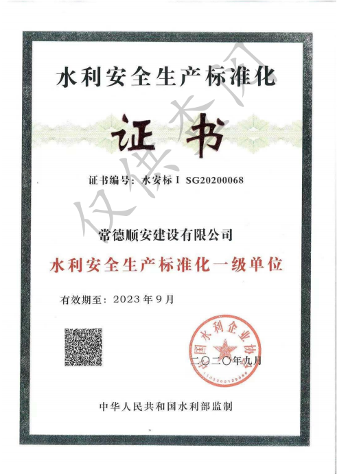 水利安全生產(chǎn)標準化一級證書