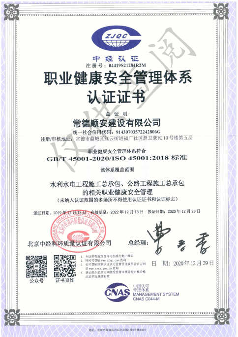 您現(xiàn)在位置: 榮譽(yù)資質(zhì) - 職業(yè)健康安全管理體系認(rèn)證證書