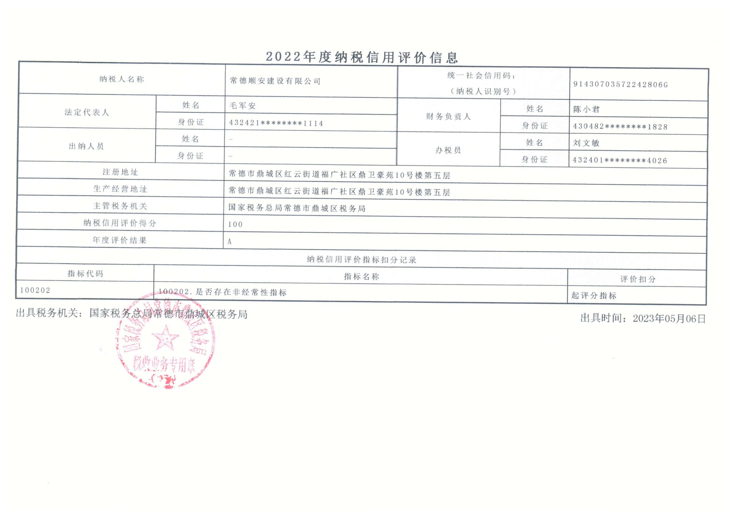 您現(xiàn)在位置: 榮譽資質(zhì) - 2022年度企業(yè)稅務(wù)信用評價A級